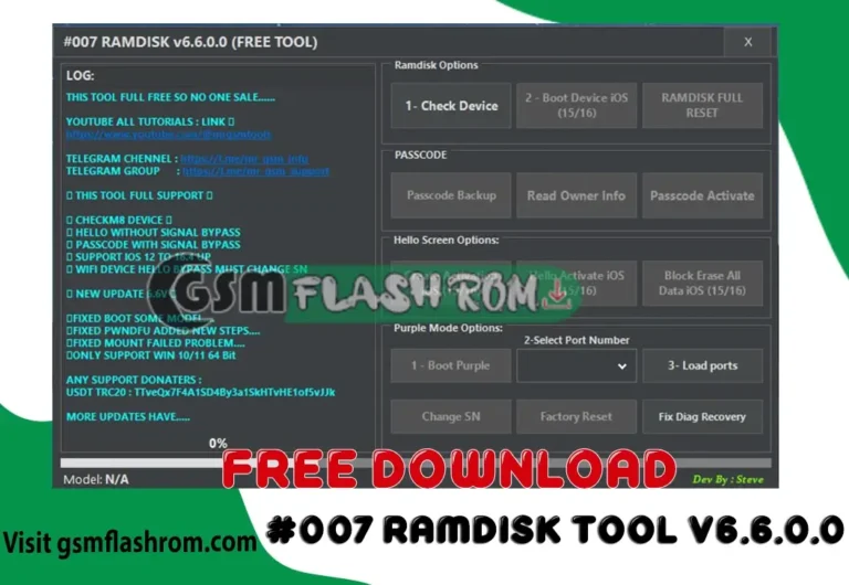 Unlock your iPhone or iPad (iOS 12–16.5.1) from the iCloud activation lock for free! #007 Ramdisk Tool v6.6.0.0 offers easy-to-use features like DFU mode, passcode backup, Hello screen customization, purple...