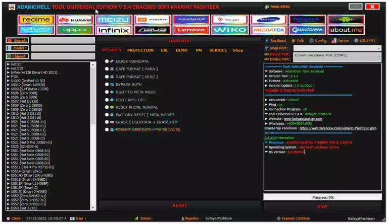 Adanichell Tools Universal Pro V3.4 is a Windows: small mobile tool Support Qualcomm Factory Reset FRP Reset Mi Account Remove Reset EFS Unlock Bootloader Disable Mi Cloud Id Support Factory Reset – META, VIVO New, Disable Auth, remove user data screen lock reset FRP lock some supported MTK Auth bypass Model.