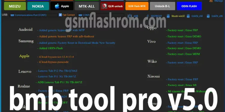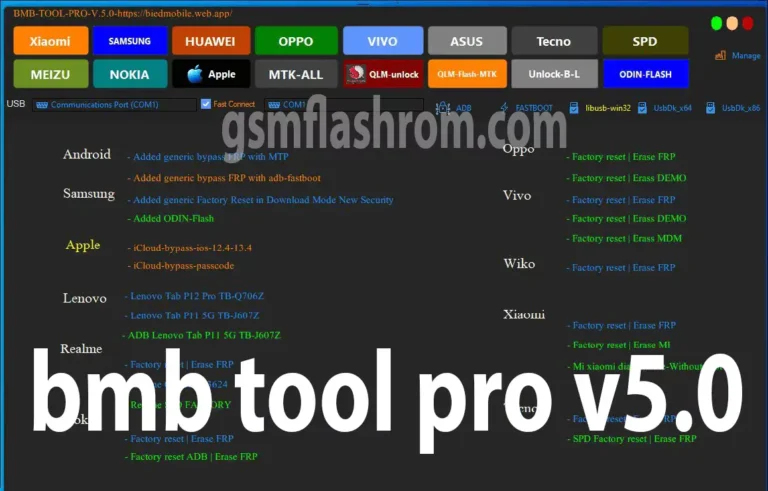 bmb tool pro v5.0 is a Windows: small mobile tool Support Qualcomm Factory Reset FRP Reset Mi Account Remove Reset EFS Unlock Bootloader Disable Mi Cloud Id Support Factory Reset – META, VIVO New, Disable Auth, remove user data screen lock reset FRP lock some supported MTK Auth bypass Model.