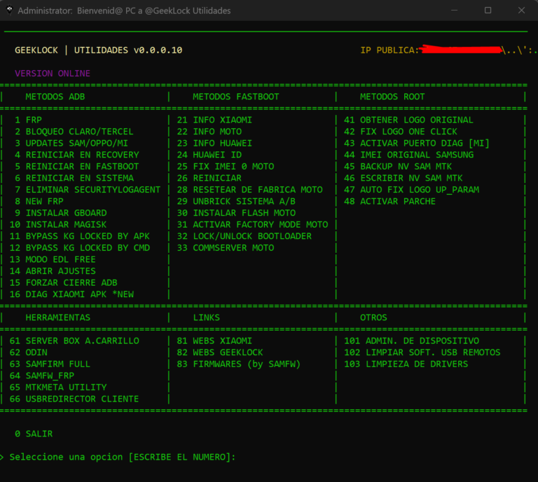 Download GEEKLOCK UTILIDADES v0.0.0.10 is a windows small mobile Tool Support Feature BYPASS KG LOCKED BY APK ADB BYPASS KG LOCKED BY APK remove FRP ADB: Remove Screen Lock ADB Remove System Image ADB removes APK File ADB Remove Mi Cloud Account Samsung Remove FRP Samsung Remove Screen Lock Fastboot: factory Reset FRP Reset mi Account Reset Mi cloud. sideload Support Removed FRP Screen Lock Flash Fastboot Image