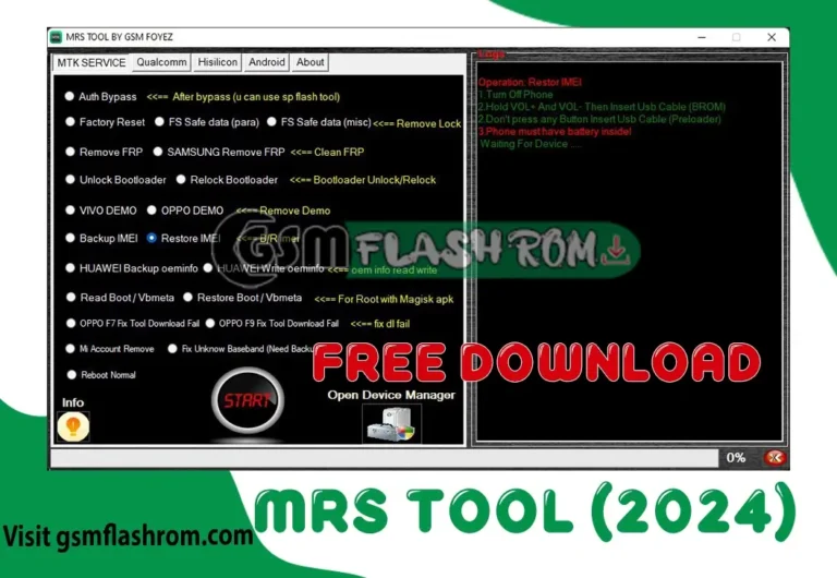 Unlock the FRP lock, fix bootloader issues, or fix the stock on demo? MRS Tool by GSM FOYEZ (2024) offers FREE solutions! Unlock, reset, repair, and manage various phone functions for multiple brands (Samsung, Xiaomi, Vivo, Oppo, etc.).