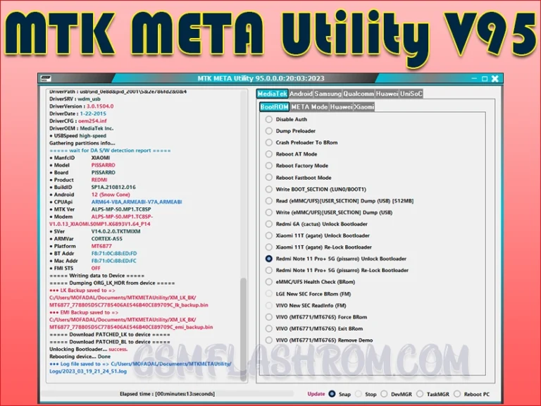 MTK META Utility V95 Unlock and Relock Bootloader for Xiaomi Redmi Note 11 Pro+ 5G (pissarro)