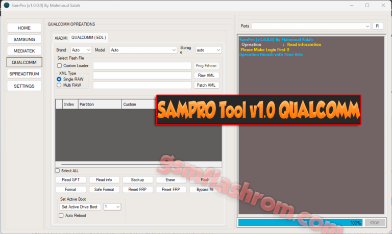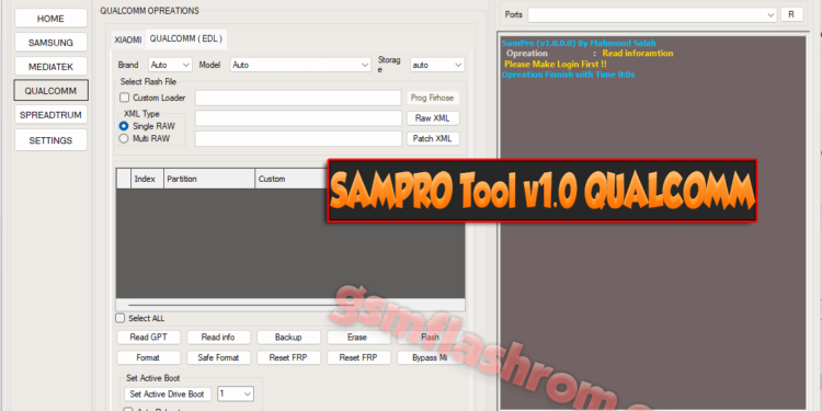 As per the information available, Download Update: SAMPRO Tool V1.0.0 Login Edition is a tool developed for Samsung, MediaTek, Qualcomm, and SpreadTrum devices. Some of the features of this tool...