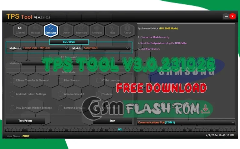 The TPS Tool v3.0.231026 tool supports MTK CPUs and temporary Mi account bypass. It can also unlock bootloaders, reset FRP, backup and restore erase NV Data,
