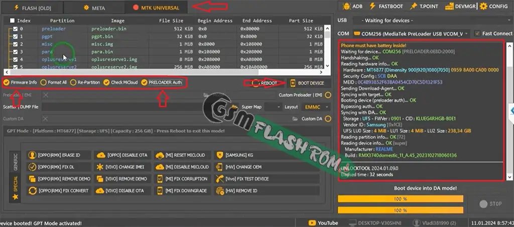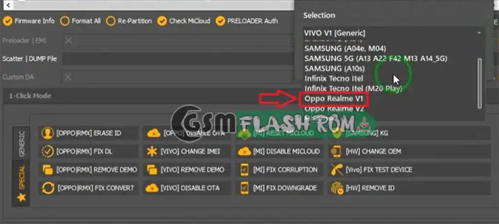 Step 2: Click the “Preloader Auth Button” and select. “Oppo Relame V1 Mode“
